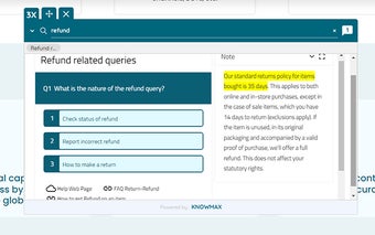 Knowmax to platforma KM zaprojektowana w celu zapewnienia natychmiastowych i dokładnych odpowiedzi dla osób, zespołów i klientów. Dzięki rozszerzeniu Chrome Knowmax użytkownicy mogą uzyskać dostęp do wszystkich informacji z bazy wiedzy swojej firmy, nie opuszczając obecnego ekranu. Eliminuje to konieczność przełączania się między ekranami, umożliwiając zespołom obsługę wielu klientów jednocześnie.